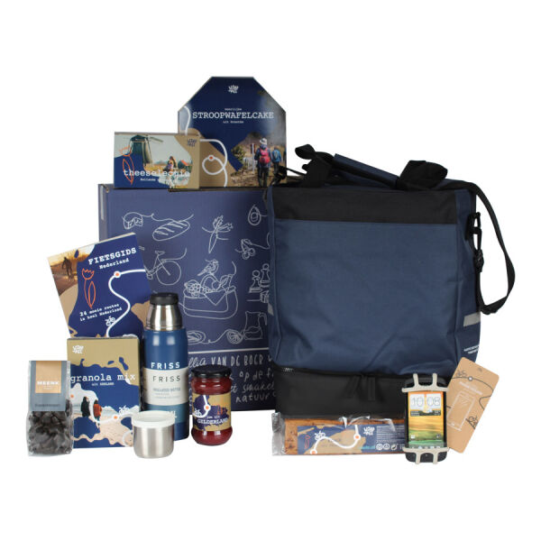 Voor iedereen die graag op pad gaat: Wind Mee is hét kerstpakket dat beweging, gemak en smaak combineert. De stevige recycle shopper met fietshaak en koelvak is perfect voor onderweg, net als de isoleerfles en telefoonhouder voor op het stuur. Met de Fietsgids Nederland plan je je volgende route, terwijl je onderweg geniet van granola, stroopwafelcake, boerenklompendrop, koekreep of aardbeienjam. De theeselectie maakt het moment compleet. Wind Mee is een origineel kerstpakket voor buitenmensen die houden van vrijheid, ontspanning en goede smaak.