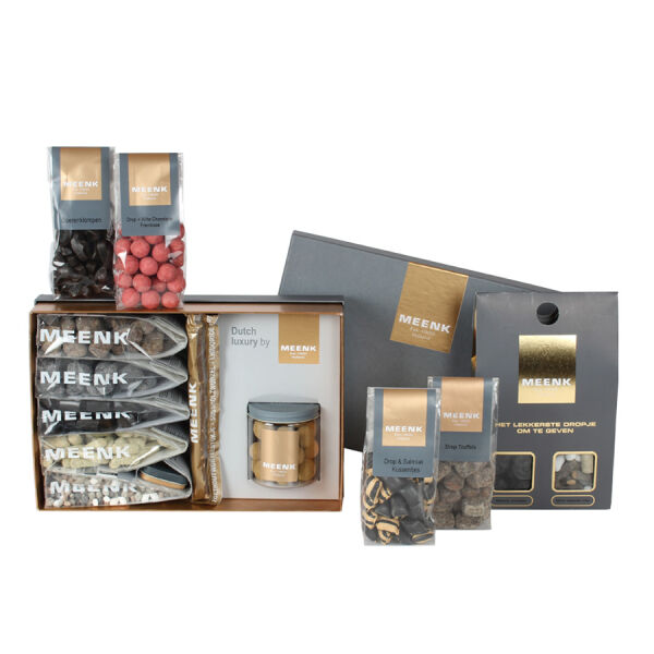 Voor de echte dropfan is er niets beter dan de drop geschenken. Deze luxe verpakkingen bevatten een heerlijke variatie aan traditionele en verrassende dropsmaken. Van boeren klompendrop en salmiakkussentjes tot droptruffels en drop gecombineerd met witte chocolade en framboos. Elke set biedt een unieke proeverij van Hollandse kwaliteit. Met hun luxe uitstraling zijn deze verpakkingen niet alleen perfect om zelf van te genieten, maar ook ideaal als geschenk voor iedere liefhebber van authentieke drop.