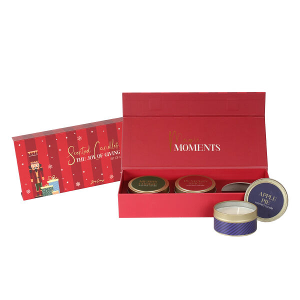 De Scent of Joy kaarsenset bestaat uit drie stijlvolle kerstkaarsen die zorgen voor een warme en feestelijke uitstraling. Perfect om gezelligheid in huis te brengen tijdens de feestdagen en een prachtig geschenk om weg te geven.